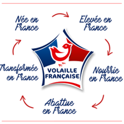Il garantit que tout le parcours de la volaille a bien eu lieu en France et qu’elle a bénéficié du savoir-faire reconnu des professionnels de la filière avicole française et de leur volonté de fournir les meilleures volailles possibles, dans les meilleures conditions ! Choisir une volaille porteuse du logo « Volaille Française » représente l’assurance de pouvoir choisir un produit issu d’une volaille née, élevée, nourrie, abattue, découpée et transformée en France. L’utilisation de ce logo est soumise au respect d’un cahier des charges strict et d’un audit annuel.